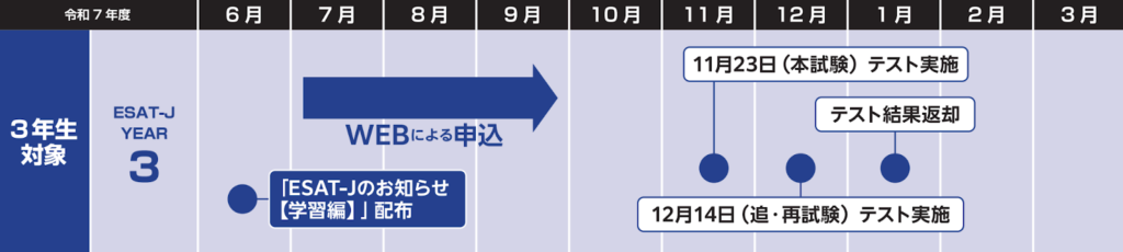 さらに令和6年度からは、3年生向けの「ESAT-J」を「ESAT-J YEAR 3」という名称に変更しています。