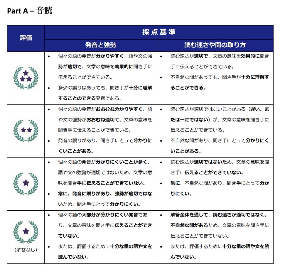 - Part A:音読は「発音の完璧さ」より、内容が伝わる読み方